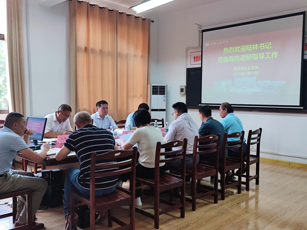 书记、院长高敏从学院基本情况、功能定位优化、学科评估与学科发展战略、“大思政”格局的形成、“三全育人”的构建、思政课改革创新、马克思主义理论宣传与智库建设及近期取得的成绩等方面进行了汇报。副院长林忠心、宫晓虹围绕思想政治理论课教学、学院纪委工作、学科建设等作了补充。与会人员结合自身工作实际,就加快学院发展、破解发展难题以及未来发展思路、发挥全省重点马克思主义优势提升思想政治理论课堂教学质量,加强马克思主义理论学科建设等方面进行交流,积极建言献策。