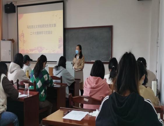 10月21日上午,研究生党支部在学院324室举行党的二十大精神学习交流会,组织支部党员、发展对象和入党积极分子畅谈学习体会,会议由支部书记苗云飞主持。