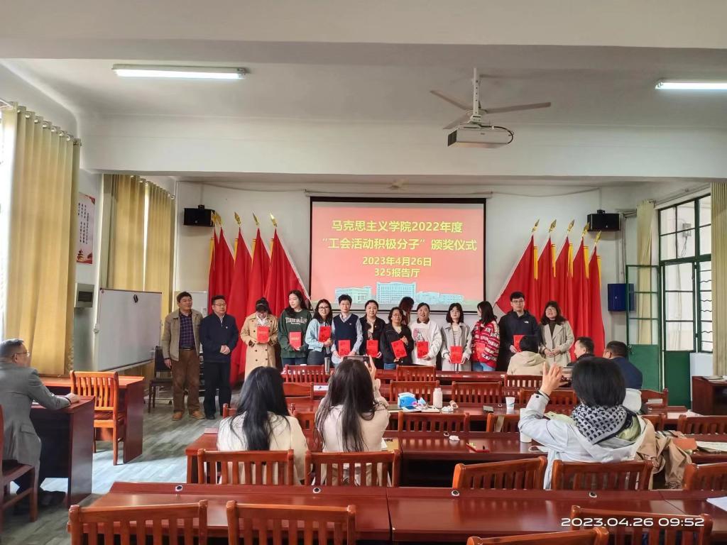 会上,对学院2022年度“工会活动积极分子”进行了表彰,学院领导为刘丹丹、王桂兰、庞东霞、杨婷婷、姚礼巧、邱浩、周玉英、李刘薇、沈嘉仪、凌静雯等8位同志颁发了荣誉证书。(撰稿:斯小燕 审核:徐惠)