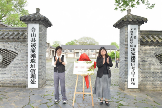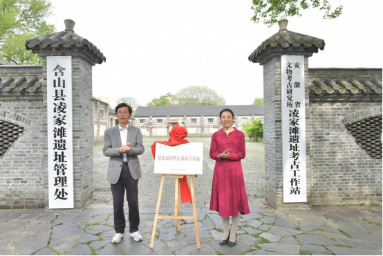思想政治理论课研学基地揭牌仪式。含山县委常委、宣传部长张思嘉,凌家滩遗址管理处主任唐军,TKTub