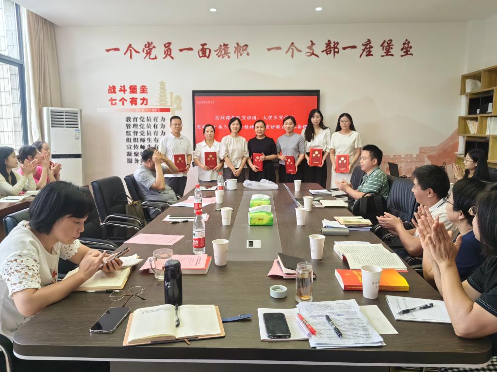 徐惠传达了学校《关于做好学习贯彻党的二十届三中全会精神宣讲工作的通知》要求,大学生宣讲团指导教师苗云飞汇报了近期宣讲工作安排。宣讲团成员姜玉齐、毕圣海围绕学习贯彻习近平总书记重要讲话和全会《决定》,深刻领会全会的重大意义,深刻领会党的二十届二中全会以来党和国家事业取得的重大成就,深刻领会进一步全面深化改革的总体要求和重大举措,深刻领会推进改革中需要把握的重大问题,深刻领会党中央对下半年工作的重要部署,深刻领会党中央对深化教育综合改革工作的新要求等方面,对全会精神进行了示范宣讲和深入阐释。与会人员围绕自身宣讲经历、做好党的二十届三中全会精神宣讲工作的思考等作了分享交流。