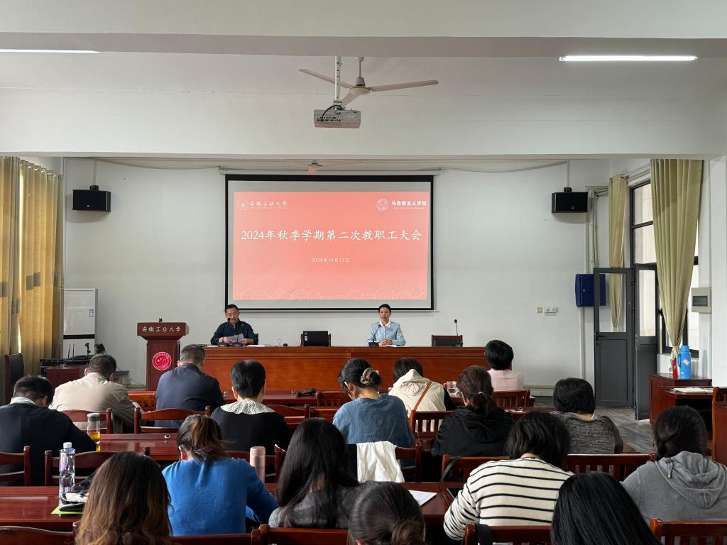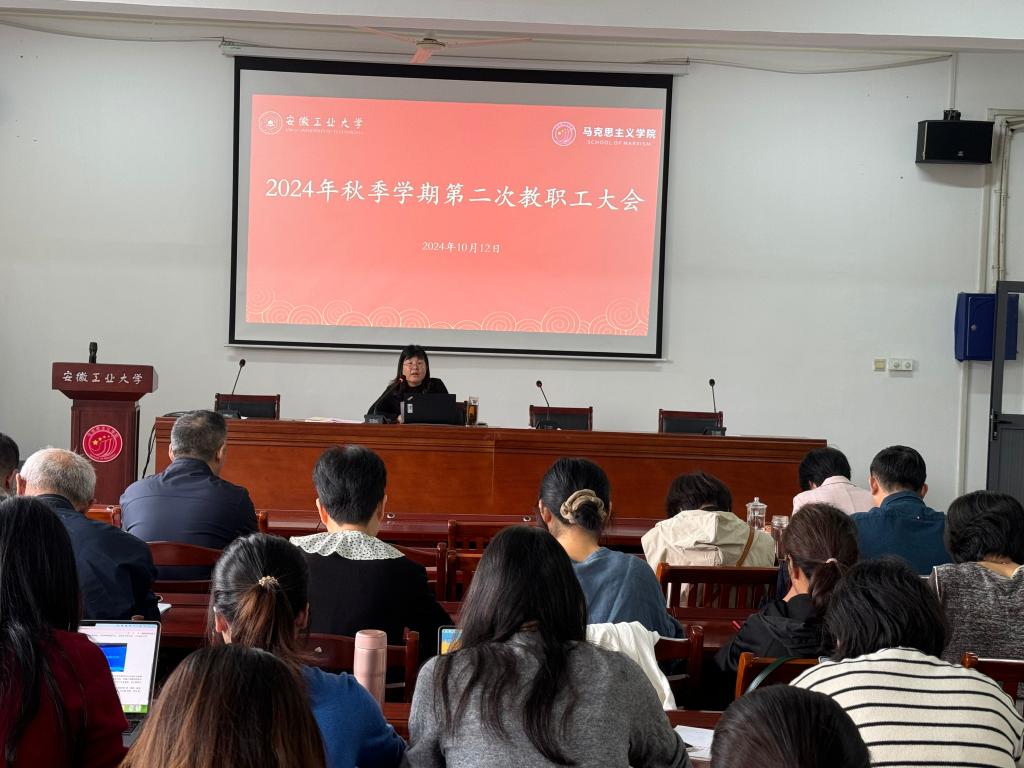 在学院楼325学术报告厅召开2024年秋季学期第二次教职工大会,会议由学院党委书记徐惠主持,学院全体教职工参会。