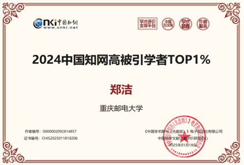郑洁教授入选马克思主义理论学科“2024中国知网高被引学者Top1%”,同时以重庆邮电大学名义入选。