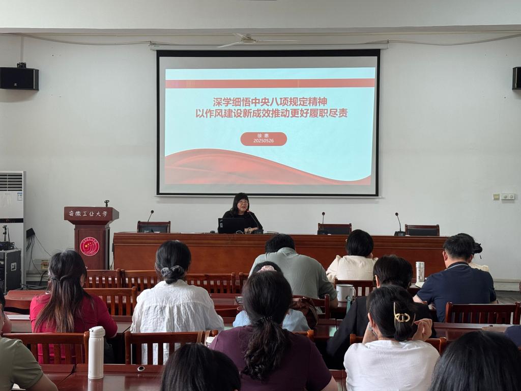 在综合楼325报告厅开展深入贯彻中央八项规定精神学习教育专题党课。学院党委书记徐惠以《深学细悟中央八项规定精神,以作风建设新成效推动更好履职尽责》为主题,为学院全体教职工讲授专题党课。