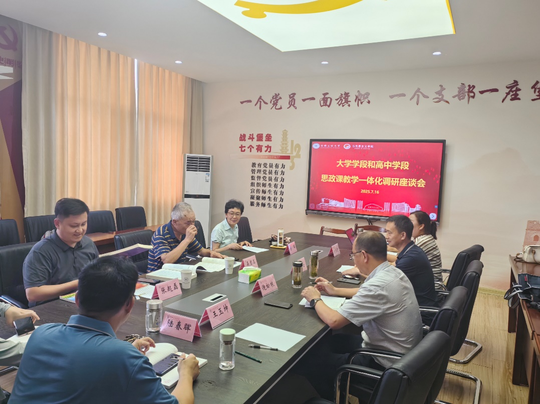 组织开展大学学段和高中学段思政课教学一体化交流座谈会,会议邀请了马鞍山市大中小学思政教育一体化建设研究中心吴望民,市第二中学特级教师、正高级教师李丽和市学科带头人张起磊来学院交流指导。学院副院长林忠心、副院长倪松根和教师代表王玉坤、陆春晖、孙文静、庞东霞参加会议。会议由林忠心主持。