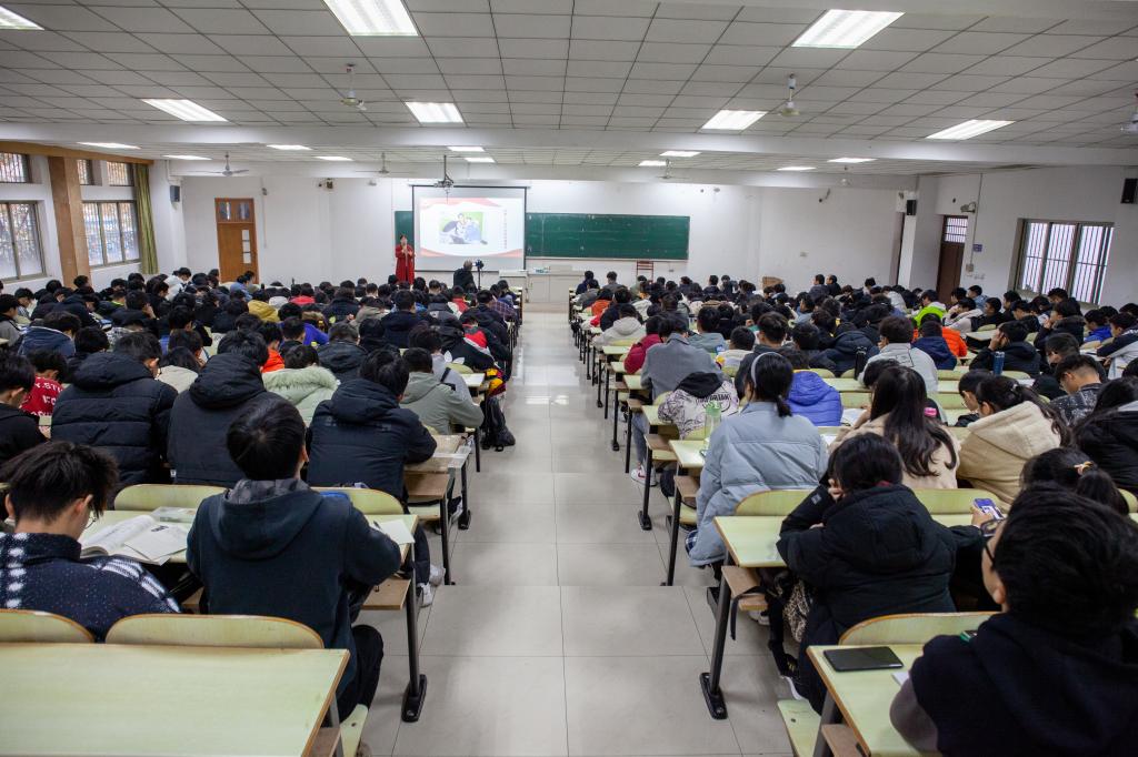 为深入贯彻落实《中共安徽省委教育工委关于在全省高校组织开展新时代先进人物进校园 推进“英模•大师进思政课堂”活动的通知精神》,12月1日,由马克思主义学院和安徽省大学生思想政治教育与管理研究中心举办的“英模•大师进思政课堂”主题报告会在佳山校区教三南103教室举行。“中共十八大代表”“全国优秀党务工作者”“全国抗击新冠肺炎疫情先进个人”、马鞍山市花山区金家庄街道新风社区党委书记邢春桂走进思政课堂,为我们带来“弘扬抗疫精神 厚植爱国情怀”的专题报告。报告会由马克思主义学院党委副书记、副院长林忠心主持。马克思主义学院全体师生及全校350余名新生代表聆听了报告。