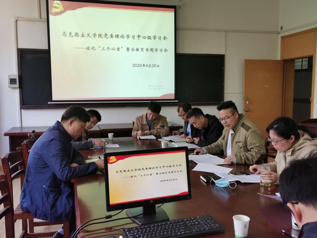 4月28日上午,马克思主义学院党委召开中心组学习会,深入学习贯彻习近平总书记关于全面从严治党的重要论述,以赵正永、张坚等违纪违法案为镜鉴,开展深化“三个以案”警示教育集中学习研讨。学院党委书记高敏主持会议,学院全体班子成员、党委委员参加了学习研讨会。校警示教育第三督导组组长黄勇、成员黄敏到会指导。
