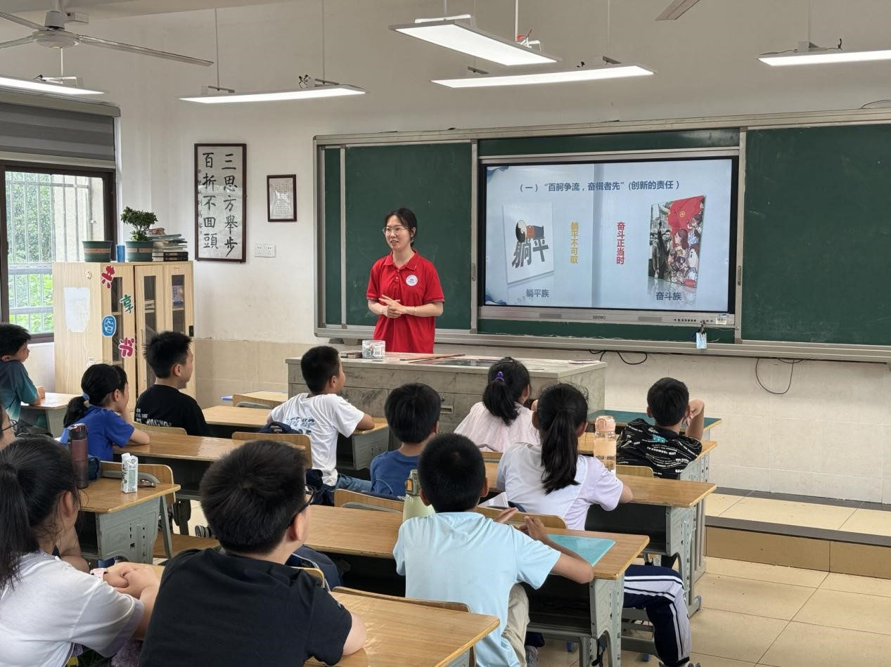 宣讲队员王琪以《少年立创新之志,科技谱强国新篇》为题,通过播放视频、互动交流、知识竞答等少年儿童喜闻乐见的方式进行精彩宣讲,向孩子们展示了科技强国的壮丽蓝图和创新精神的重要性,并耐心解答孩子们的问题,引导他们思考科技创新对于国家发展的重要意义。