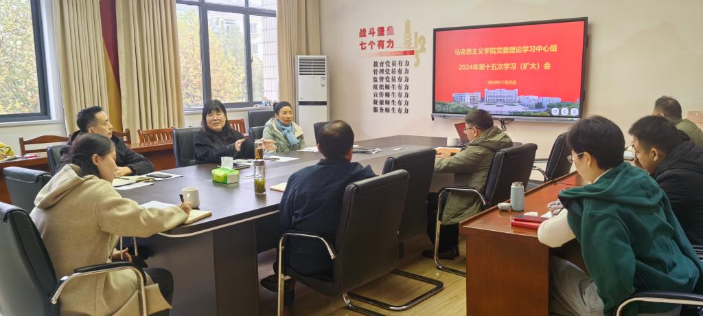 11月25日上午,马克思主义学院在综合楼324会议室召开2024年党委理论学习中心组第十五次学习(扩大)会议。学院党委委员、党支部书记、科级干部参加会议。会议由学院党委书记徐惠主持。