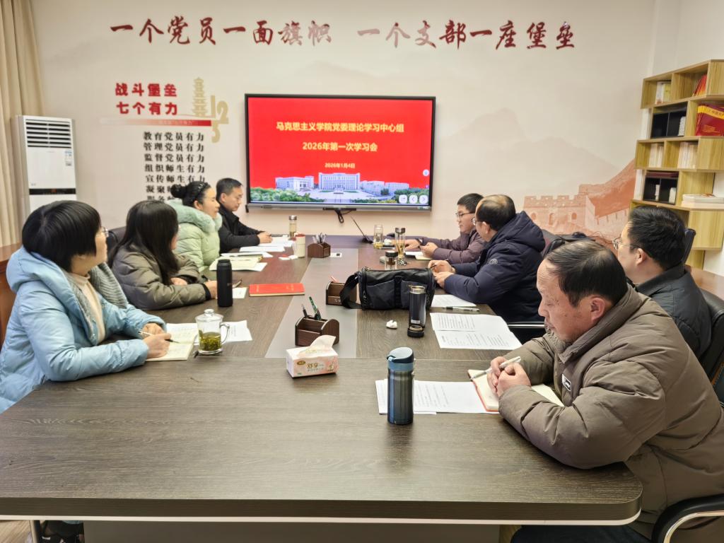 1月4日下午,马克思主义学院在综合楼324会议室召开2026年党委理论学习中心组第一次学习会。会议由学院党委书记徐惠主持。