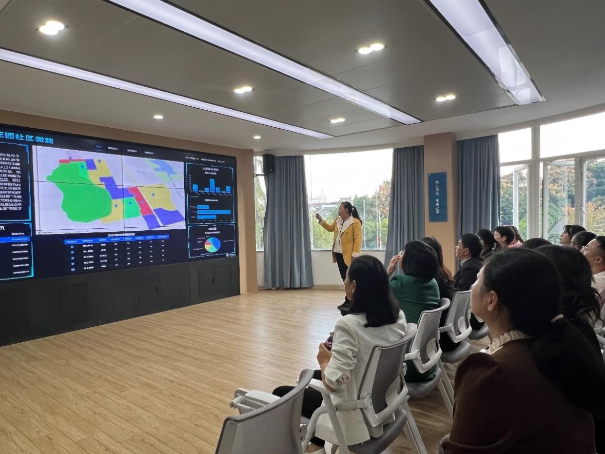 雨山街道党工委委员、组织委员杨胜利,半山花园社区党委书记、居委会主任唐成云,党委副书记陈欣对马克思主义学院党员教师一行的到来表示热烈欢迎,并陪同参观了半山花园社区党群服务中心、各类文艺团体活动室,现场演示了半山花园社区“微脑”项目。