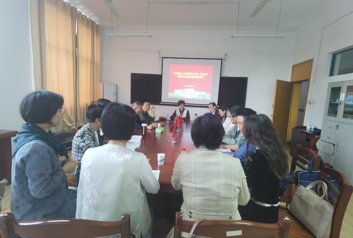 5月13日下午,马克思主义学院教工第二党支部在综合楼308会议室举办主题党日活动,热议习近平总书记对学校思政课建设作出的重要指示,活动由支部书记于春莉主持。