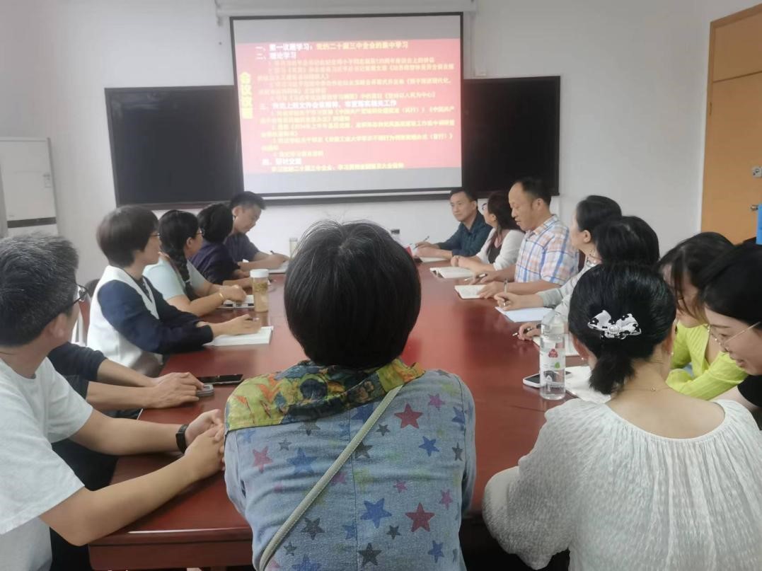 会议以“学习贯彻党的二十届三中全会精神,争做实干先锋”为主题开展了主题党日活动。在深入学习了习近平总书记关于《中共中央关于进一步全面深化改革、推进中国式现代化的决定》的说明和《中国共产党第二十届中央委员会第三次全体会议公报》全文内容的基础上,支部全体党员结合思想实际、工作实际,从深刻认识党的二十届三中全会的重大意义、全面理解各领域重点改革任务、立足岗位全面贯彻落实全会精神等方面展开了热烈讨论。支部党员于春莉、戴少刚、姜晓静、杜梅梅、徐悦和林忠心老师作了重点交流发言。于春莉指出,要将我们的工作和党中央要求结合起来,坚决贯彻落实党中央决策部署,要将落实会议精神与推进新时代思政课教学改革结合起来,进一步加大改革创新力度,提升教育教学水平和质量,培养时代新人。要继续秉持改革创新的理念,运用改革创新的方法,不断提高自身思想素质、业务素养和工作能力,争当改革先锋和实干中坚,共同在新时代的征程上,书写改革开放的辉煌篇章。