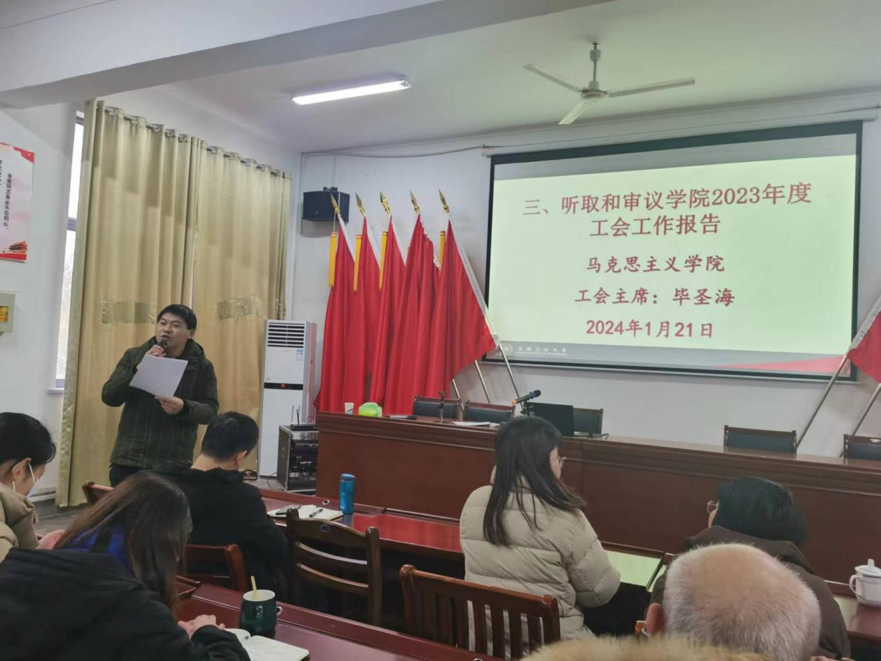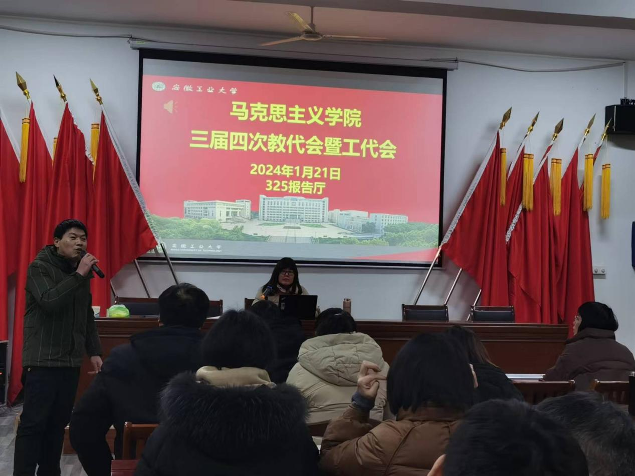 1月21日下午,马克思主义学院在学院325报告厅召开学院三届四次教代会暨工代会。学院教代会正式代表参加了此次会议,列席代表旁听了会议,大会由学院工会主席毕圣海主持。