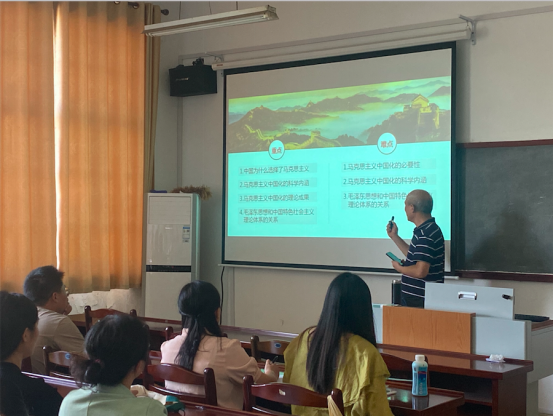 为持续推进思想政治理论课教学研讨活动,切实提高思政课教师“关键课程”教学能力和育人水平,充分发挥“老带新”的示范作用,帮助新进教师教育教学能力与素养全面提升,9月20日下午,马克思主义学院在院324教室举办了第四期“‘理’论思政课”之“教学名师示范课”教学观摩研讨活动。本次教学名师示范课由省教学名师阮超群教授主讲,教学副院长林忠心主持,全体新入职和转岗思政课教师等参加了现场观摩学习。