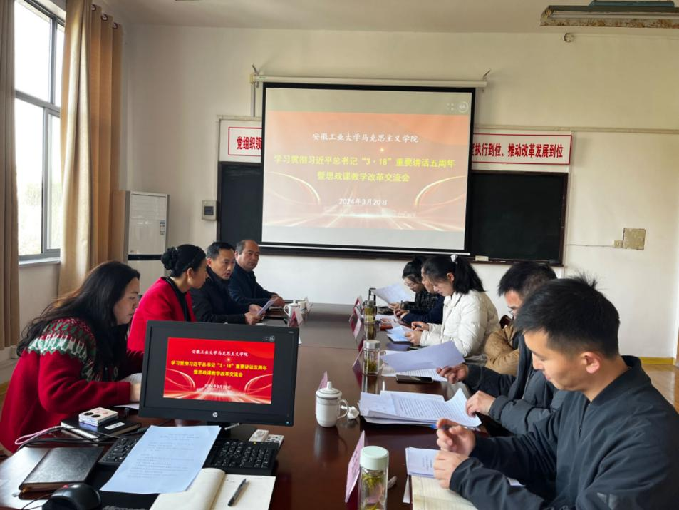 3月20日上午,马克思主义学院在综合楼312会议室召开了学习贯彻习近平总书记“3·18”重要讲话五周年暨思政课教学改革交流会。马克思主义学院院长等班子成员、各教研室主任等参加会议,会议由副院长林忠心主持。
