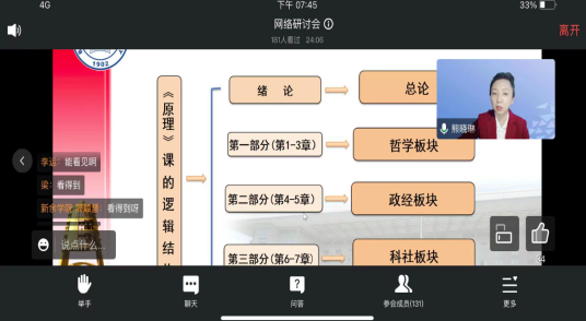 为深入贯彻落实中共中央办公厅、国务院办公厅《关于深化新时代学校思想政治理论课改革创新的若干意见》和中宣部、教育部《新时代学校思想政治理论课改革创新实施方案》等文件精神和要求,纵深推进《马克思主义基本原理》课教学改革和课程建设, 近日,“原理”教研室全体教师以线上会议的方式参加了《马克思主义基本原理》“问题式专题化团队教学改革”集体备课会。此次集体备课会是由全国高校思政课“手拉手”集体备课中心、全国高校思政课名师工作室和江西师范大学马克思主义学院共同主办。