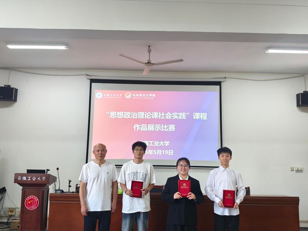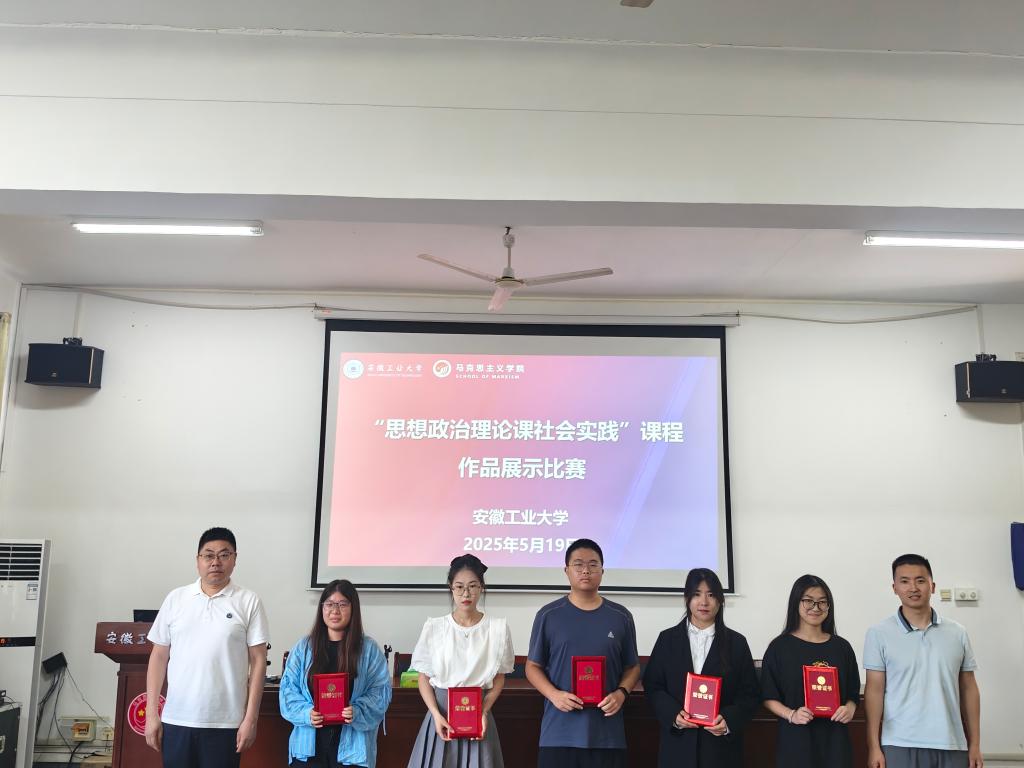 为深入贯彻落实习近平总书记关于“大思政课”建设的重要指示精神,创新《思想政治理论课社会实践》课程教学模式,5月19日下午,首届《思想政治理论课社会实践》课程作品展示比赛决赛在马院325会议室隆重举行。比赛邀请教研室主任阮超群教授、周仁准副教授、许屹山副教授、王玉坤副教授,以及艺术与设计学院视觉艺术教育党支部书记李林森副教授担任评委,学院领导出席活动,参加决赛作品指导老师等参加。决赛由马克思主义学院硕25级研究生张兆华主持。