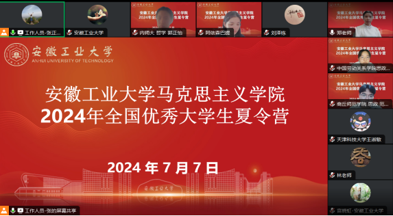 为增进大学生对马克思主义理论学科的进一步了解,搭建高校大学生之间的交流平台,选拔有培养潜质的优秀大学生继续深造,马克思主义学院于7月7日举办2024年全国优秀大学生夏令营活动。本次活动以腾讯会议形式开展。学院领导班子成员、学院硕士研究生导师代表以及来自全国6所高校的营员参加夏令营活动,活动由宫晓虹副院长主持。
