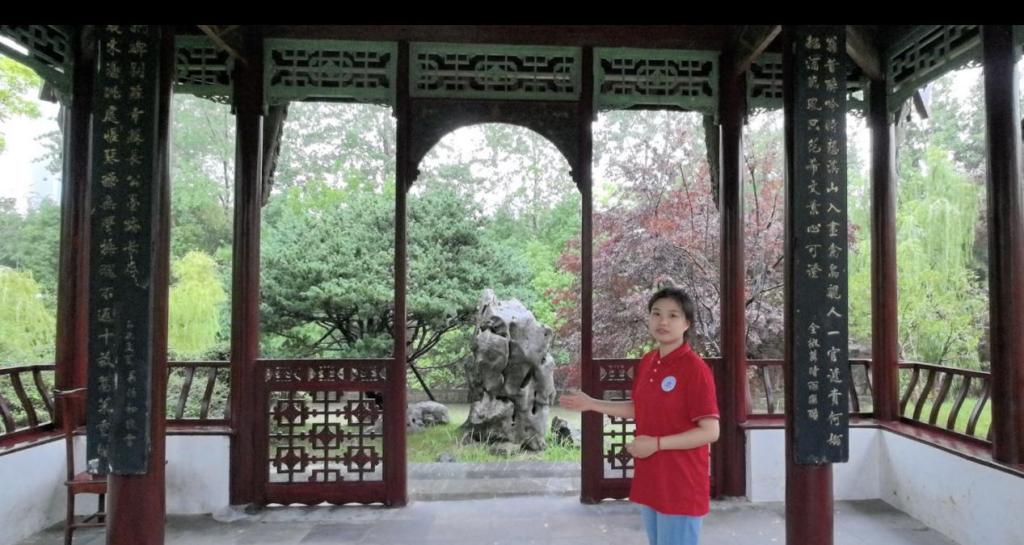 图为实践队队员在徽园醉翁亭内朗诵《醉翁亭记》