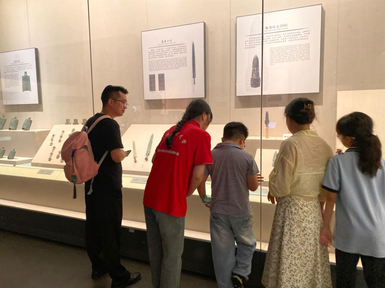 7月9日,团队一行来到了调研首站:安徽博物院。在这里,实践团队成员王丹丹以“文物中探寻中华文明”为题,向游客们讲述了安徽博物院里的镇馆之宝“铸刻大鼎”及国宝级文物“鄂君启金节”背后的故事。游客们在了解文物背后的故事后,深刻感受到了中华文明的博大精深和源远流长。博物院工作人员为调研团队详细介绍了安徽地区的历史变迁、文化成就以及非物质文化遗产的保护现状,为后续的育人实践研究提供了宝贵的素材和灵感。