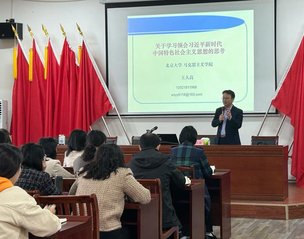 11月10日,马克思主义学院明理讲坛第17期在学院325报告厅举行。北京大学马克思主义学院教授、博士生导师王久高应邀来到学校,在马克思主义学院325报告厅做了题为“关于学习领会习近平新时代中国特色社会主义思想的思考”的学术报告,会议由副院长宫晓虹主持,学院全体教师和研究生参加会议。