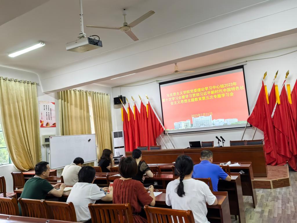 7月21日,马克思主义学院党委理论学习中心组在325报告厅召开学院2023年第十次学习会暨学习贯彻习近平新时代中国特色社会主义思想主题教育第五次专题研讨会。学院班子成员、党委委员、支部书记参会,会议由学院党委书记徐惠主持。