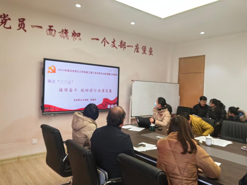 徐惠对2023年学院党委在党建引领、党建融合促发展取得的突出成绩进行了全面总结,同时对存在的问题进行了分析,提出了下一步工作目标和措施。她强调,2024年学院党委将聚力构建“三三五”党建工作大格局,按照“五个到位”要求,抓基础、促融合、聚合力,以高质量党建引领学院高质量发展。各支部要聚焦“七个有力”,发挥党支部书记头雁作用,发挥基层党组织战斗堡垒作用和党员先锋模范作用,紧密结合学校学院中心工作和支部具体实际,积极推进工作创新,建优建强党建品牌,力争在党建工作中再创佳绩。要促进党建与事业发展共进共融,持续深化7+X关键课程改革攻坚,不断提升思政课的思想性、理论性、亲和力和针对性。