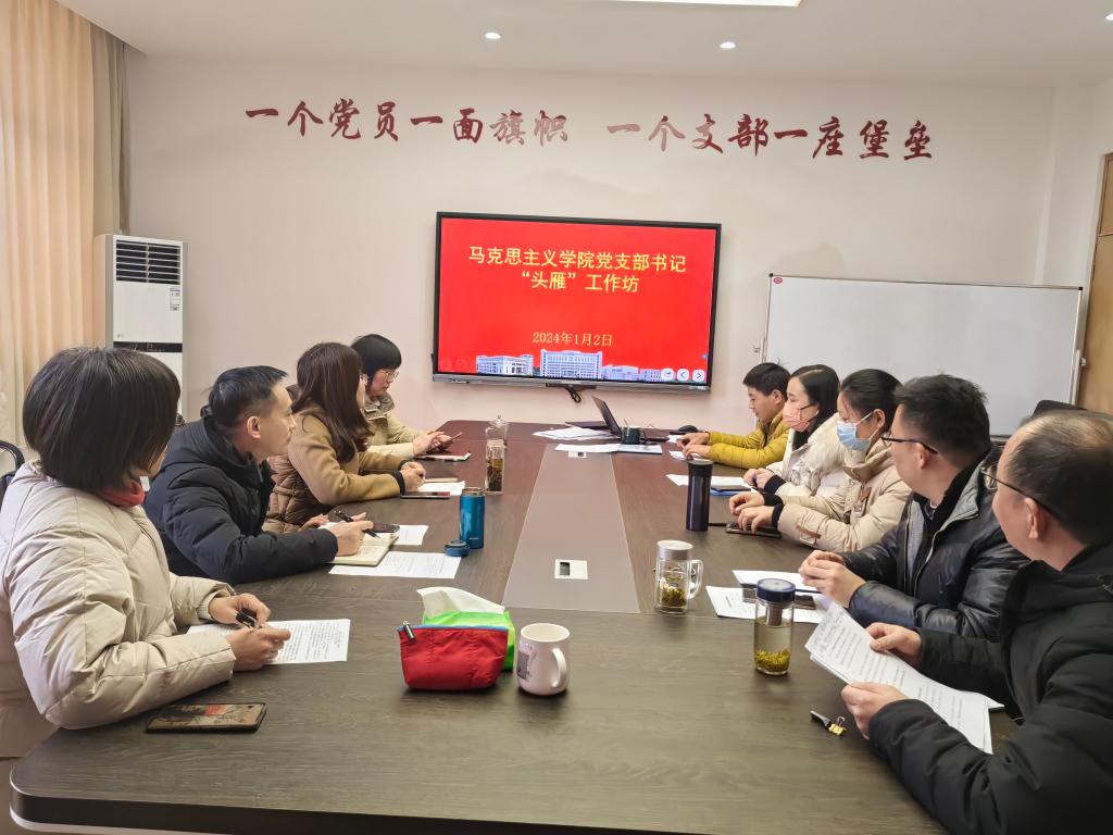 1月2日,马克思主义学院在综合楼324会议室举办党支部书记“头雁”工作坊活动。学院班子成员、党支部书记、支部委员参会,会议由学院党委书记徐惠主持。