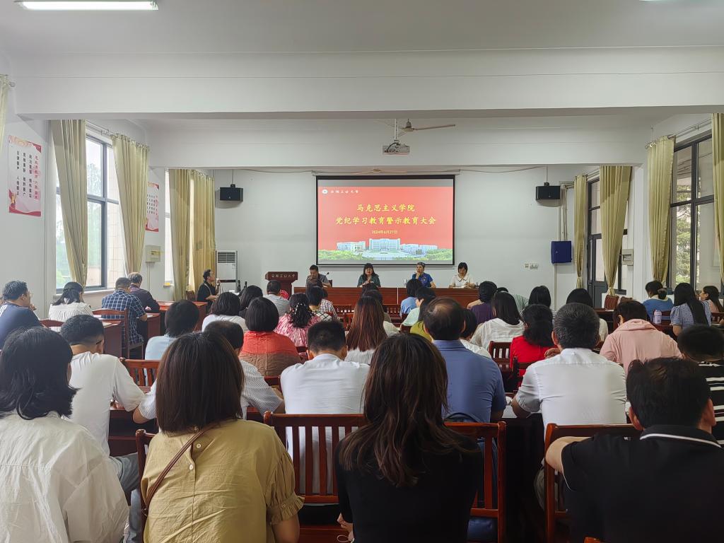 6月27日上午,马克思主义学院在综合楼325学术报告厅召开党纪学习教育警示教育大会,会议由学院党委书记徐惠主持,学院全体教职工参加会议。