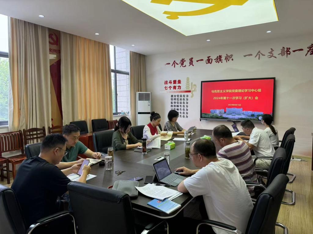 8月14日上午,马克思主义学院在综合楼324会议室召开2024年党委理论学习中心组第十一次学习(扩大)会议。学院党委委员、党支部书记、科级干部参加会议。会议由学院党委书记徐惠主持。
