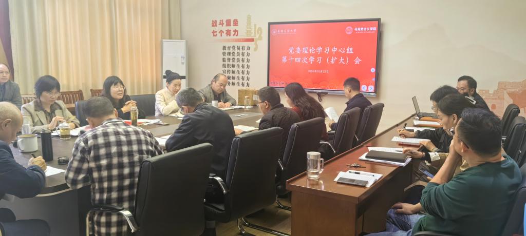 10月22日上午,马克思主义学院在综合楼324会议室召开2024年党委理论学习中心组第十四次学习(扩大)会,专题学习习近平总书记考察安徽重要讲话精神。学院党委委员、党支部书记、教研室主任、科级干部参加会议。会议由学院党委书记徐惠主持。