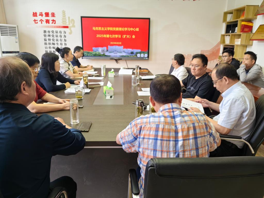 6月3日下午,马克思主义学院在综合楼324会议室召开党委理论学习中心组2025年第七次学习(扩大)会议。学院党委委员、党支部书记参加会议。会议由学院党委书记徐惠主持。