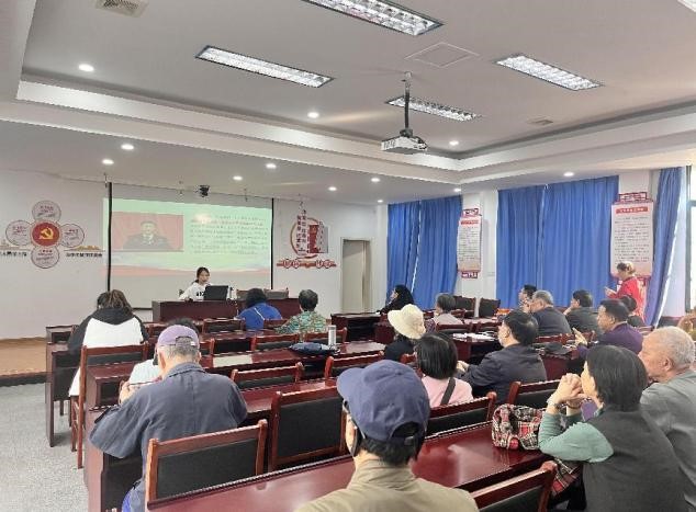 从新民主主义革命时期、社会主义革命和建设时期到改革开放和社会主义现代化建设新时期,再到中国特色社会主义新时代,宣讲团成员戴德鑫围绕主题“永远跟党走,奋斗新征程”向社区老干部、老党员阐释了“团结奋斗是中国人民创造历史伟业的必由之路”的理解。她情绪高昂地讲述了“没有共产党就没有新中国,没有共产党就没有我们今天的幸福生活”,强调了中国共产党的历史作用。整个过程内容丰富,充满激情,向大家生动展示了党的奋斗征程。