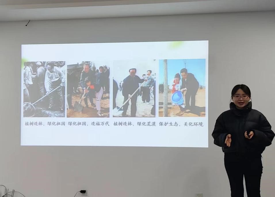 宣讲团成员石延霞围绕习近平生态文明思想,从思想理念、生动实践和青年行动三个方面展开宣讲。以马鞍山生态环境为切入点,结合生动实践,探寻马鞍山以绿为笔绘就美丽中国生态画卷。倡导同学们参与美丽中国建设,共同营造天蓝、地绿、水清的生态环境。