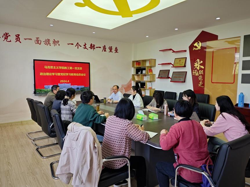 4月22日下午,马克思主义学院教工第一党支部在学院楼324室开展政治理论学习暨党纪学习教育动员会议。会议由支部书记倪松根主持,支部全体党员参加会议。