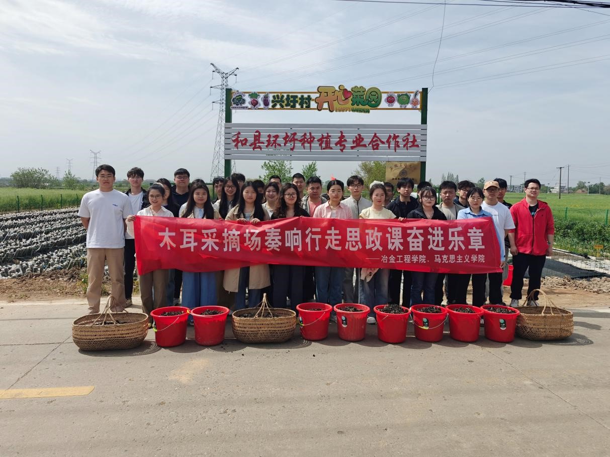 为深化新时代劳动教育内涵,推动党建工作与专业实践的深度融合,4月16日,安徽工业大学马克思主义学院与冶金工程学院师生共同前往和县历阳镇兴圩村黑木耳产业园劳动教育合作基地,联合开展“行走的思政课”暨劳动教育实践活动。两院师生通过“实地”调研、“劳动”实践与理论研讨相结合的方式,在田间地头深刻感悟劳动精神,进一步厚植家国情怀。
