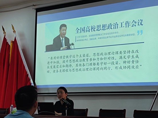最后,高敏对学院思政课建设的发展进一步提出了要求:一是牢牢把握目标和方向。全面贯彻党的教育方针,牢记为党育人、为国育才初心使命,深入推进思政课改革创新,不断增强思政课的思想性、理论性和亲和力、针对性,着力打造立德树人“金课”,努力培养堪当民族复兴重任的时代新人。二是切实提高思政课教学质量。每位思政课教师要牢记讲好思政课的首要岗位职责,努力探求思政课讲授的方式方法,深入研究思政课教学方法和教学重点难点问题,基于底层逻辑,钻研如何将理论知识讲深、讲透、讲活,增强学生对思政课的认同感。三是建强师资队伍。通过一系列手段提高思政课教师的教学科研能力,尤其是重视对青年教师的培养,严格执行新进教师导师制,定期举办优秀思政理论课教学展示活动,建立“学”“练”一体机制,提高青年教师的教学能力,严格执行教研室集体备课制度等。
