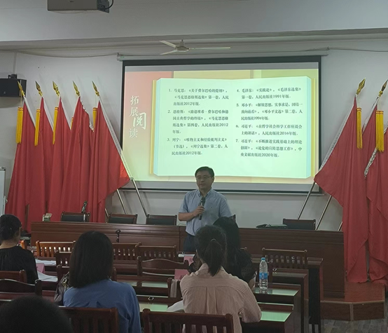 为贯彻落实习近平总书记关于教育的重要论述特别是关于高校思政课、马克思主义学院建设的重要指示批示精神,持续深入学习贯彻党的二十大精神,巩固拓展学习贯彻习近平新时代中国特色社会主义思想主题教育成果,提高新进教师站稳讲台、上好“关键课程”能力,9月11日下午,马克思主义学院举办第十一期“‘理’论思政课”新进教师“精彩一课”展示活动。校教务处处长郑啸,党委教师工作部副部长周爱军,校督导组专家陈选华以及学院党政领导、院教学督导组老师、相关教研室负责人等受邀担任评委,部分教师和学生代表观摩了本次展示活动。活动由学院党委副书记、副院长林忠心主持。