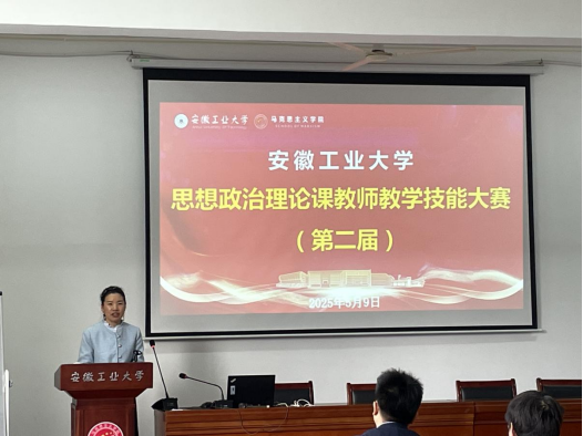 在深入学习贯彻党的二十大精神、二十届三中全会精神,全面落实习近平总书记关于教育的重要论述和新时代学校思政课建设重要指示批示精神的关键时期,2025年5月9日上午,安徽工业大学成功举办了第二届思想政治理论课教师教学技能大赛。江南大学马院副院长、博士生导师、教育部高校思想政治理论课教学能手唐忠宝教授,党委宣传(统战)部黄敏副部长,党委教师工作部、人力资源处周爱军副处长,教务处陈德鹏副处长,学院教学督导组组长梁华府副教授受邀担任评委。马克思主义学院领导班子和学院师生现场观摩了比赛。