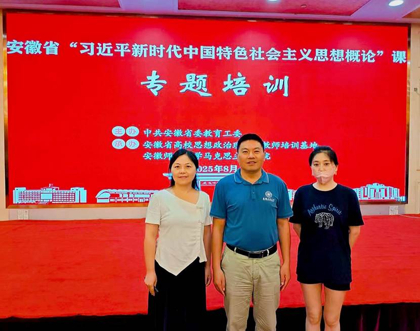 8月20日至24日,安徽省2025年“习近平新时代中国特色社会主义思想概论”课专题培训班在芜湖举办,省内各高校“习近平新时代中国特色社会主义思想概论”课专兼职思想政治理论课教师共百余名参加培训。我院毕圣海、许醴、江俊丽3位教师参加了本次培训。