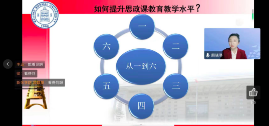 备课会上,北京师范大学马克思主义学院熊晓琳教授作了题为“讲好原理课的思考与实践” 专题辅导报告。熊晓琳教授从“明确定位,夯实基础”“把握标准,突出要求”“全情投入,精心设计”三个方面展开论述。并就如何讲好思政课重点围绕四个方面进行了阐述:一是深耕教材、讲清理论,二是创新方法、用活素材,三是全情投入、以情动人,四是严格自律、知行合一。熊晓琳教授结合自身教学实际,为大家介绍了建设一堂思政课“金课”的经验,即应做到“从一到六”。一是一个红心;二是科研和教学两条腿走路;三是追求讲政治、讲科学、讲故事的“三讲”;四是突出深耕教材,讲清理论、用活教材、创新方法四个基本要求;五是做到用心、用力、用眼、用脑、用情五位一体;六是把握教学设计的六个要素。最后,熊晓琳教授强调必须把讲好思政课当做一项事业来做,鼓励思政课教师要通过日常集体备课活动,将教材体系向教学体系转化,讲好有高度、有深度、有情怀、有温度的思政理论课。
