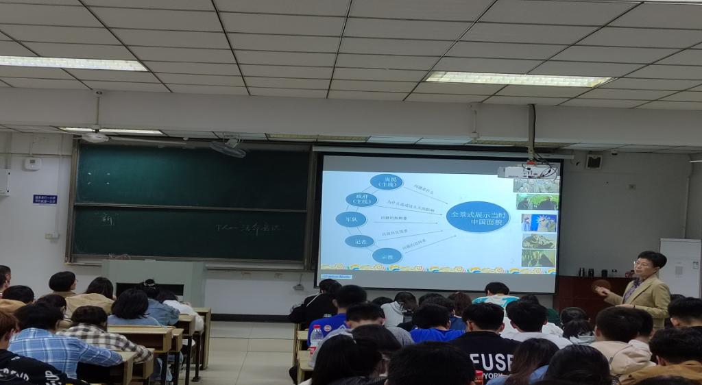 为加强我校思政课课程体系建设,更好推动课程思政与思政课程同向同行,进一步巩固协同立德树人“关键课程”攻坚项目建设成果,4月11日晚,马克思主义学院在秀山校区东教一南402,举办了第八期“‘理’论思政课”教学公开课观摩活动。主题是“课程思政”公开课:温故知“新”——从《温故一九四二》到《一九四二》。学院领导、院督导组成员、教研室主任和骨干教师代表等进行了观摩。本次公开课由马克思主义学院周玉英副教授主讲,讲授课程为《小说名著与电影精品赏析》,“四史”及选修课教研室主任孙文静博士主持。