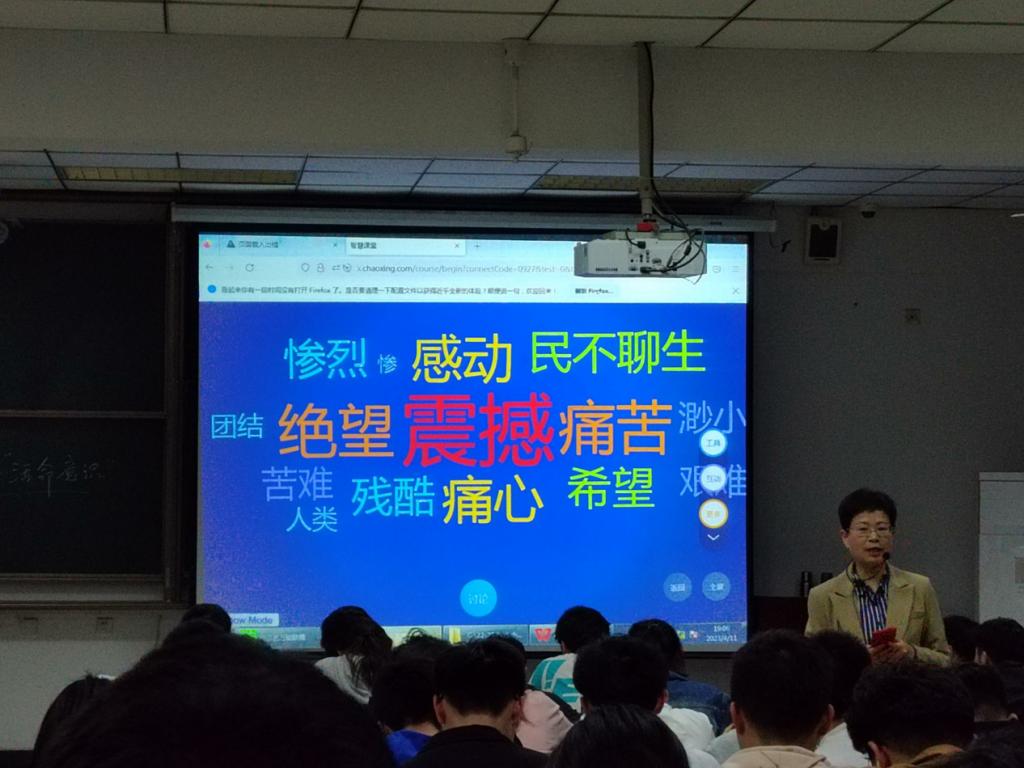 刘震云的新历史小说《温故一九四二》,冯小刚改编的电影《一九四二》,“一书一影”,均以不同艺术样式成为名著佳片。周老师从同学们身边熟悉的美食图片入手,巧妙地切入本讲专题。“一书”部分介绍了作家创作概况、人生经历等,着重围绕给予年轻人的启发,和对名著主题的透视;“一影”环节结合短视频交代了时代背景,从灾民、政府、军队、记者、宗教等五个角度全景式展示电影呈现的当时中国面貌并对重点角度进行阐述。周老师灵活应用学习通平台,结合1998年抗洪救灾、2008年汶川紧急救援等历史事件,引导学生对第一批纳入中国共产党人精神谱系的伟大精神——“抗洪精神”“抗震救灾精神”的内涵与意义进行了深入地探讨与思考。本次公开课基于课程特色,深入挖掘和提炼小说和影视中所蕴含的思政元素,在“书”与“影”的比较鉴赏中做到课程思政的“润物细无声”。