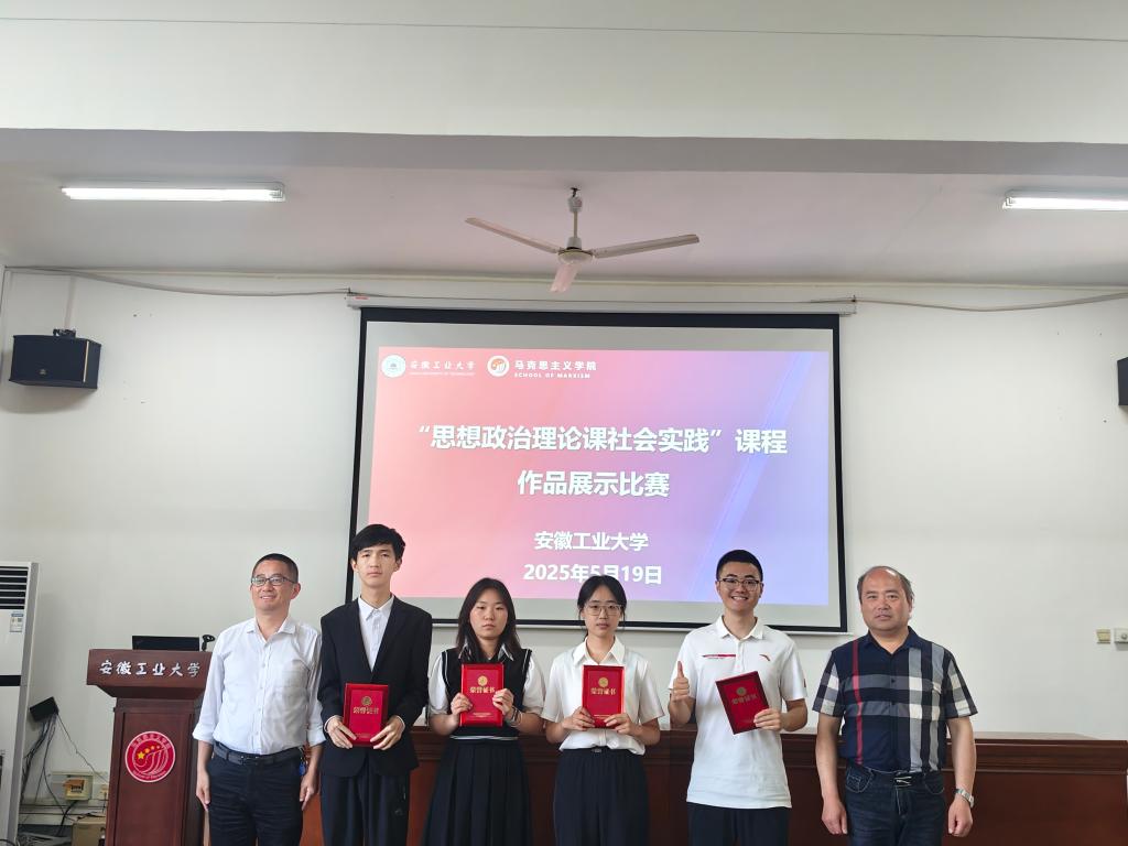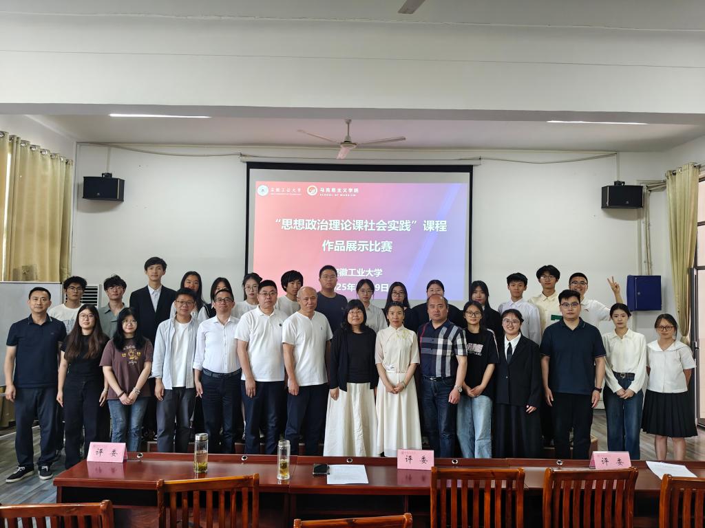 为深入贯彻落实习近平总书记关于“大思政课”建设的重要指示精神,创新《思想政治理论课社会实践》课程教学模式,5月19日下午,首届《思想政治理论课社会实践》课程作品展示比赛决赛在马院325会议室隆重举行。比赛邀请教研室主任阮超群教授、周仁准副教授、许屹山副教授、王玉坤副教授,以及艺术与设计学院视觉艺术教育党支部书记李林森副教授担任评委,学院领导出席活动,参加决赛作品指导老师等参加。决赛由马克思主义学院硕25级研究生张兆华主持。