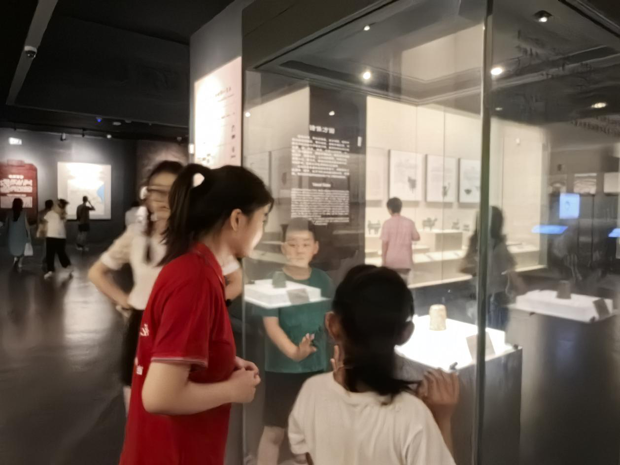7月9日,团队一行来到了调研首站:安徽博物院。在这里,实践团队成员王丹丹以“文物中探寻中华文明”为题,向游客们讲述了安徽博物院里的镇馆之宝“铸刻大鼎”及国宝级文物“鄂君启金节”背后的故事。游客们在了解文物背后的故事后,深刻感受到了中华文明的博大精深和源远流长。博物院工作人员为调研团队详细介绍了安徽地区的历史变迁、文化成就以及非物质文化遗产的保护现状,为后续的育人实践研究提供了宝贵的素材和灵感。