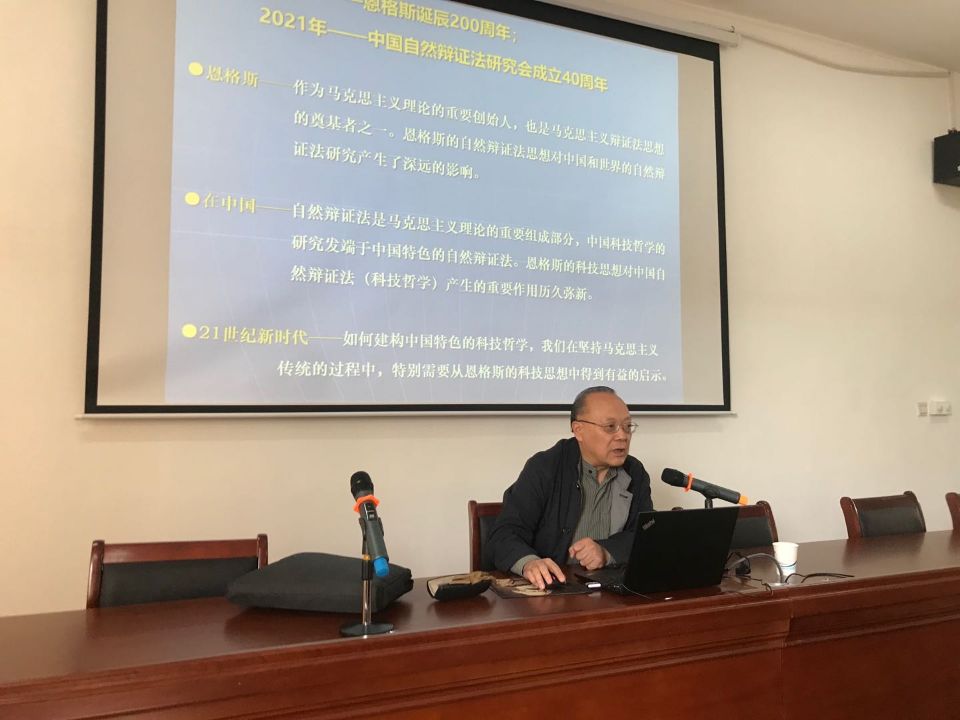 为纪念恩格斯诞辰200周年,10月20日上午在马克思主义学院学术报告厅,东北大学马克思主义学院博士生导师陈凡教授作了主题为“恩格斯与中国自然辩证法的学科建构与创新发展”的学术讲座。讲座由马克思主义学院副院长宫晓虹主持,马克思主义学院党政领导、学院全体教师、马克思主义理论专业全体研究生聆听了报告会。