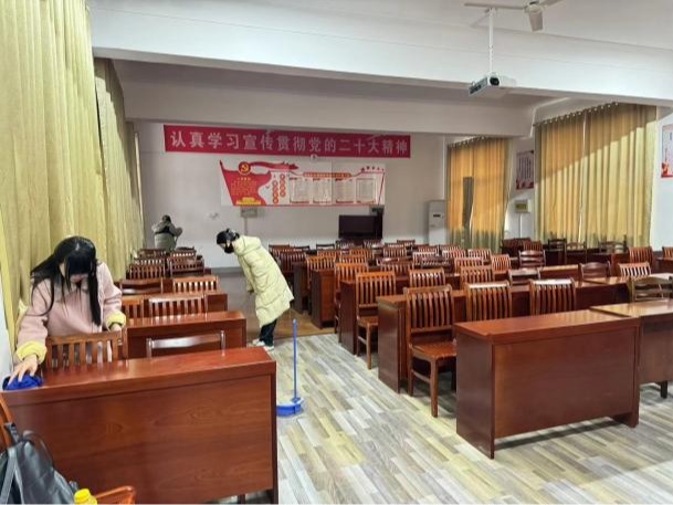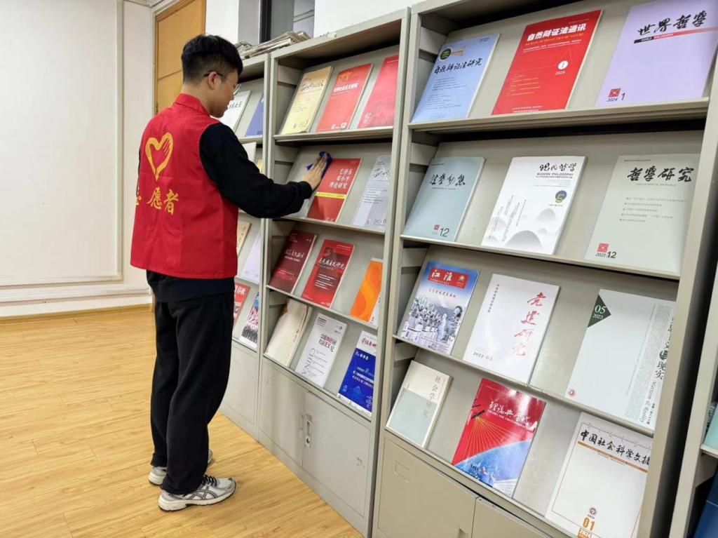 活动期间,志愿者们对教室、办公室、期刊阅览室、学术报告厅等主要教学办公及活动场所进行了全面的卫生打扫。同学们以四人为一小组,分工明确、各司其职,秉持着热情踏实的态度擦拭桌子、清扫地面以及整理桌椅等,对指定区域进行了彻底的清理,使教学活动场所焕然一新。忙碌的志愿者们认真践行“奉献、友爱、互助、进步”的志愿服务精神,成为美丽和谐校园建设中的一道亮丽的风景线,用自己的实际行动为保护、美化环境,传承雷锋精神献出了自己的一份力。
