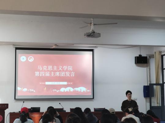 随后,第三届研究生会主席团进行述职报告,并对其上一年工作进行了全面总结。第四届主席团成员围绕研究生会学习与工作、未来工作计划和展望发言。