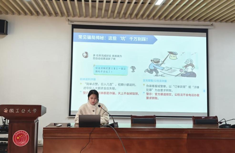 徐小曼老师详细部署了寒假工作安排、返校时间及注意事项,围绕寝室安全、交通安全、财产安全、网络安全、意识形态、防范电信网络诈骗及文明离校与留校管理等方面作细致布置和提醒。